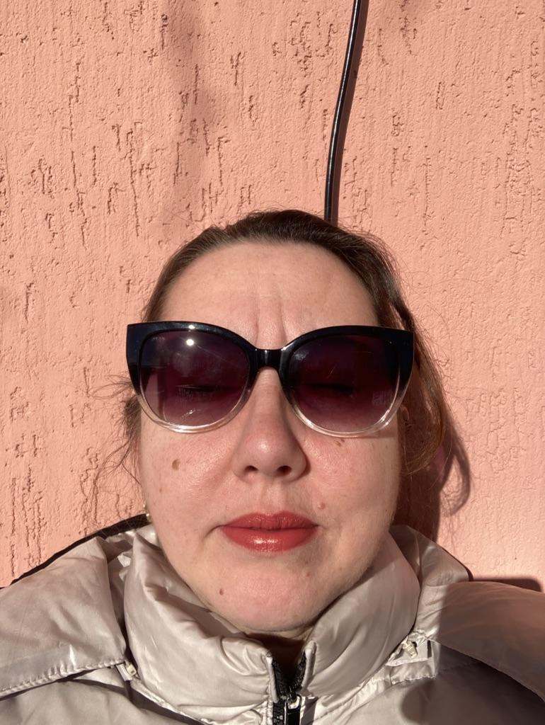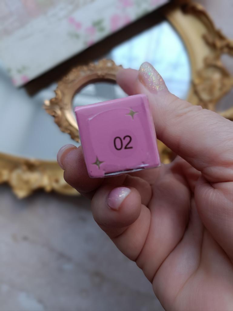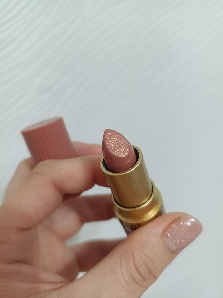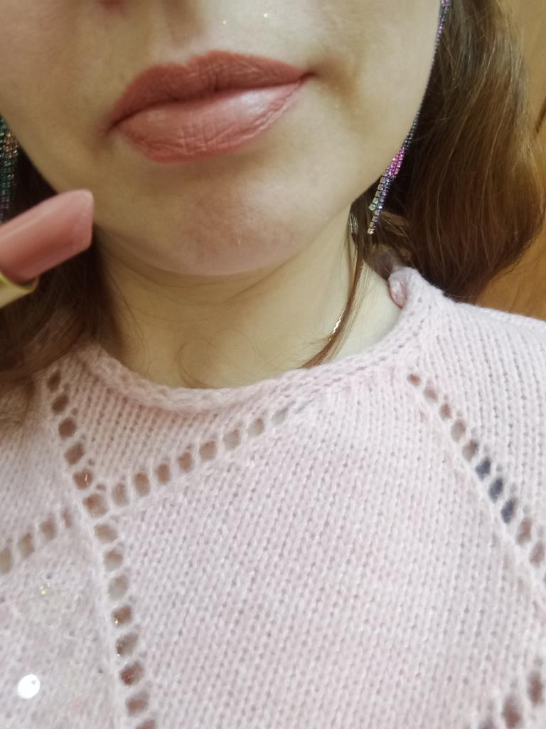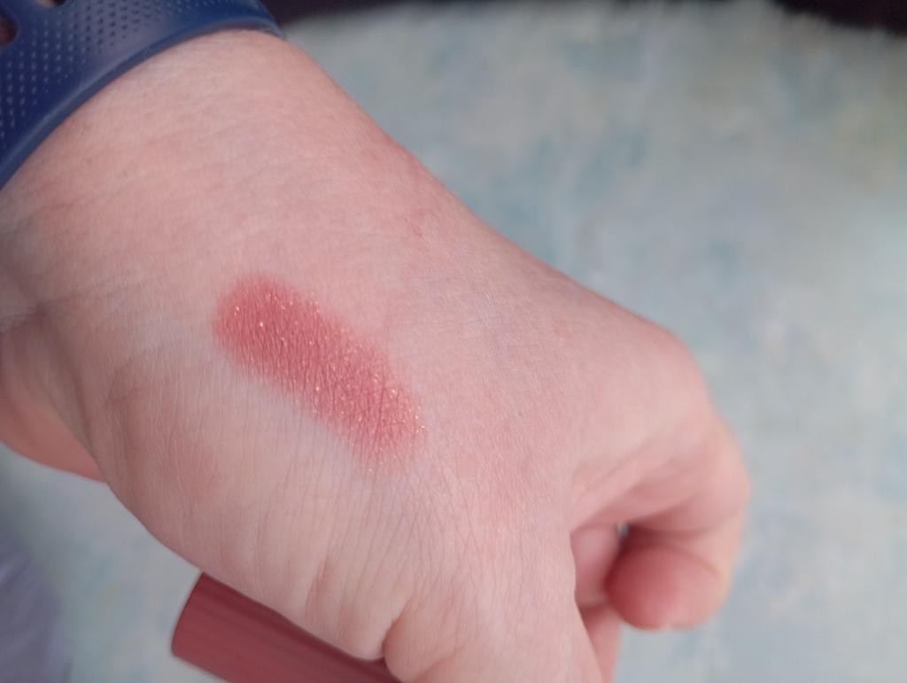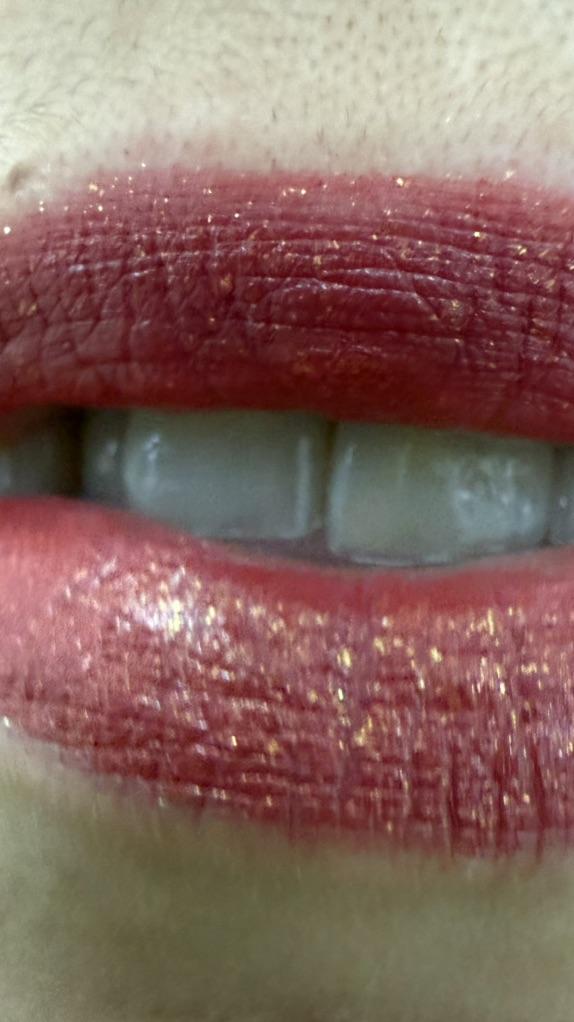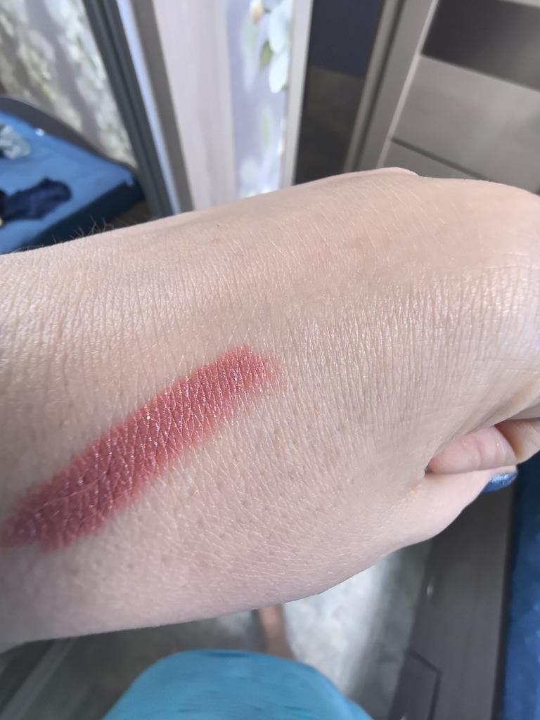Goes on softly, the scent is very pleasant, but on the lips it looks nothing like in the photo, more like a matte with a small amount of glitter, well, so-so...