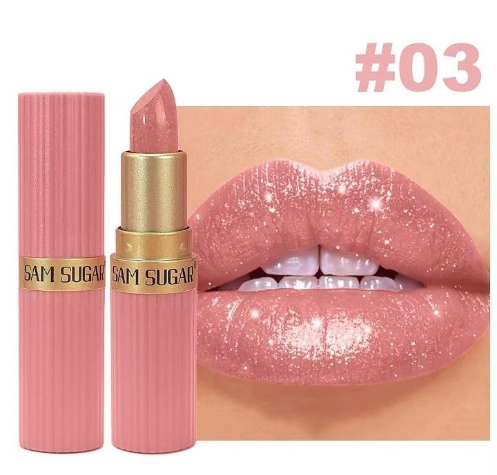 Nude Pink Luxurious Metallic Glitter Lipstick Long-Lasting Waterproof Non-Fade Shimmery Pearl Sparkling Brown Lip Gloss Makeup