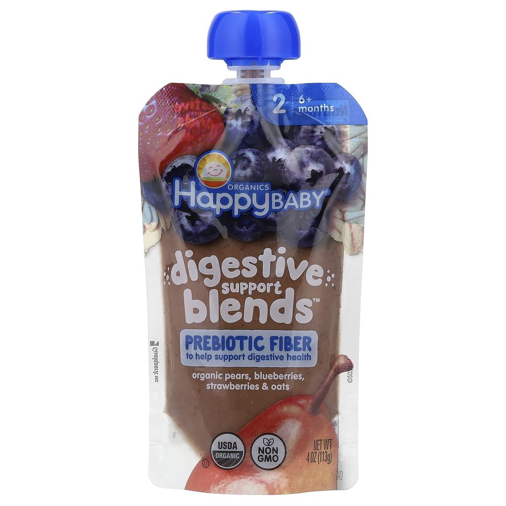 Product Description: Prebiotic Fiber for Digestive Health. Kosher. USDA Organic. Non-GMO. Certified Organic by CCOF. B Corp.. Packaging Free of BPA, BPS, and Phthalates. Prebiotic fiber is good for your baby's tummy because it provides "good bacteria" to your baby's gut! This delicious recipe includes: 1/3 pear, 9 blueberries, 1 tablespoon strawberries, 1 teaspoon oats, and 1.5 servings of fruit for your child. *A serving of fruit is 3 tablespoons.
