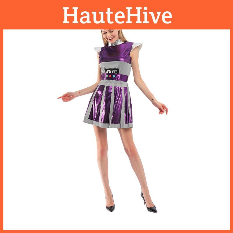 This purple alien costume is designed for stage performances and group costume events, perfect for cosplay, Halloween parties, or themed gatherings. Made of durable polyester fabric, it features a comfortable fit with available sizes S to XL. The costume's vibrant color and whimsical design support creative role-playing scenarios. Easy to care for, it can be wiped clean with a damp cloth after use.