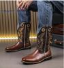 Mens Mid-calf Boots Classic Ethnic Embroidery Western Cowboy Boots Designer Square Head Knight Boots Quality Leather Casual Boot