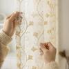 1pc Jacquard Embroidered Ginkgo Leaf Lace Rod Pocket Curtain, Suitable for Living Room and Bedroom - Sheer and Light Filtering Curtains