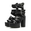 Gdgydh Women's Black Block Heeled Sandals Open Toe Buckle Strap Platform Pumps Goth Style Back Zipper High Heels Summer Shoes