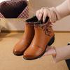 Johnature Genuine Leather Shoes Retro Ethnic Style Thick Heel Versatile Women's Short Boots