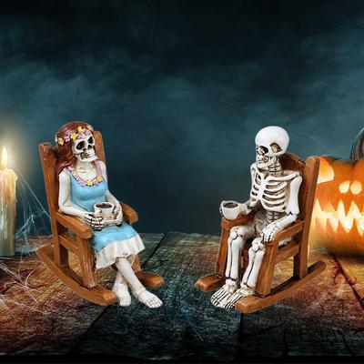 2 Pcs Skeleton Sisters Statue Resin Skeleton Girl Figurine Spooky Halloween Desktop Decoration for Haunted House Home Garden Decor