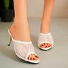 Lace High Heels Slippers Women Mesh Round Toe Sandals Woman Shoes Summer 2025 New Thin Pumps Dress Elegant Sandalias Mujer