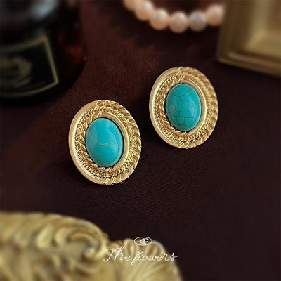 Turquoise Stud Medieval Jewelry High-End Temperament Versatile Natural Stone New Chinese Court Retro Women'S