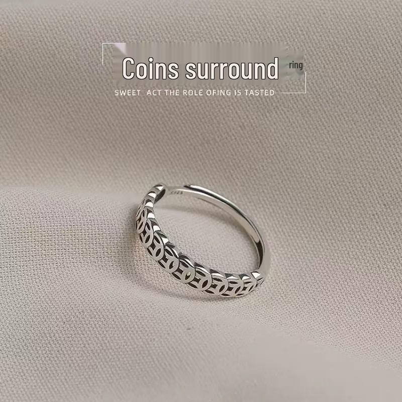 Women's Coin Ring: Adjustable Wrap-Around Design for Good Luck, Unique and Simple Chinese Style, Electroplated Finish