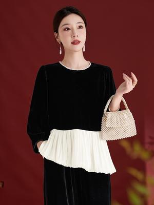 Women's Silk Velvet Jacquard Round Neck Top - Autumn