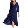Crafted from elegant chiffon, this bridesmaid evening dress features a graceful V-neck design and a form-flattering slim fit. The dress is finished with stylish three-quarter sleeves, offering a blend of sophistication and comfort. Perfect for making a statement at any special occasion, its solid color adds timeless elegance to this chic and modern silhouette.