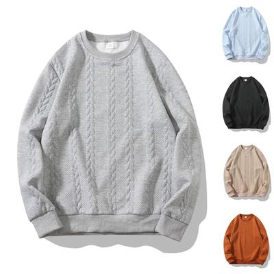 Men's Winter Solid Color Textured Round Neck Sweatshirt Hoodie Men's Sports Large Size Casual Round Neck Sweatshirt