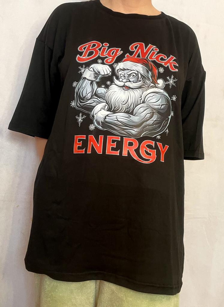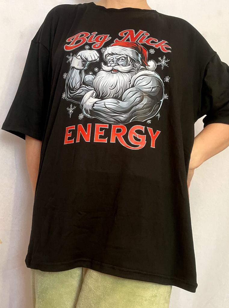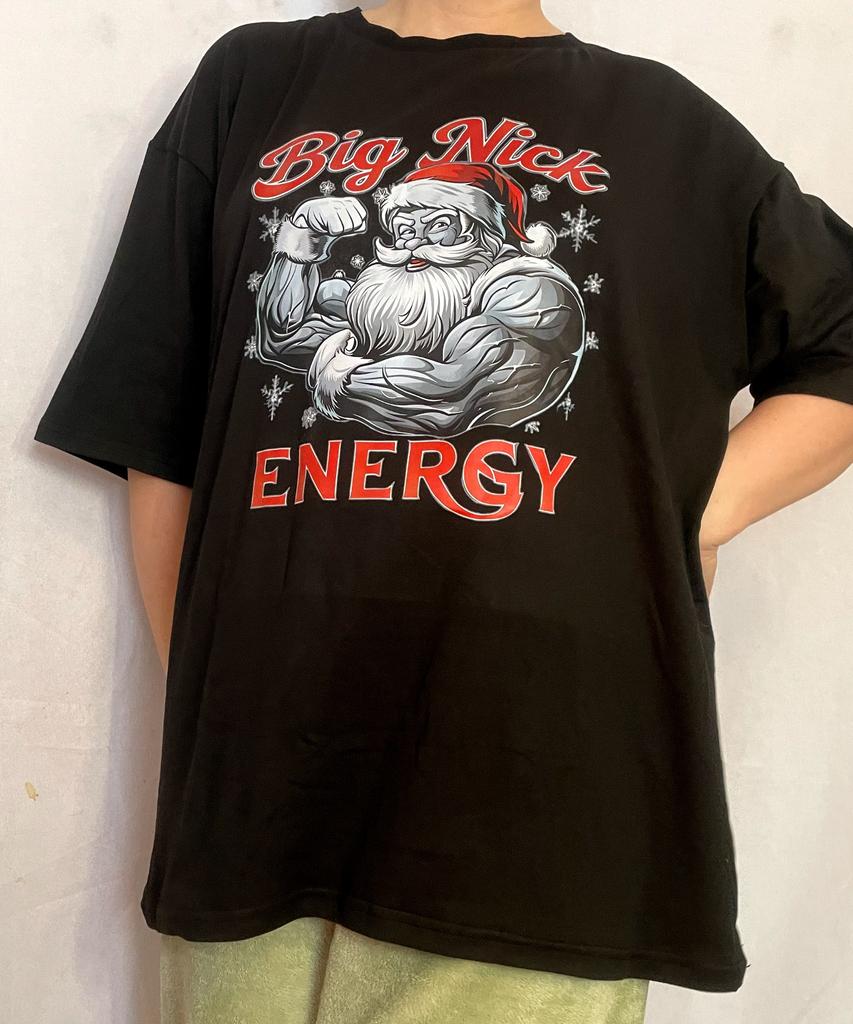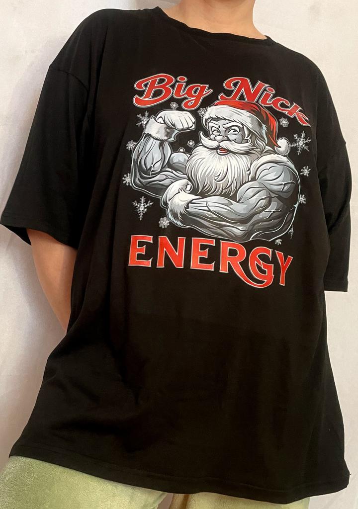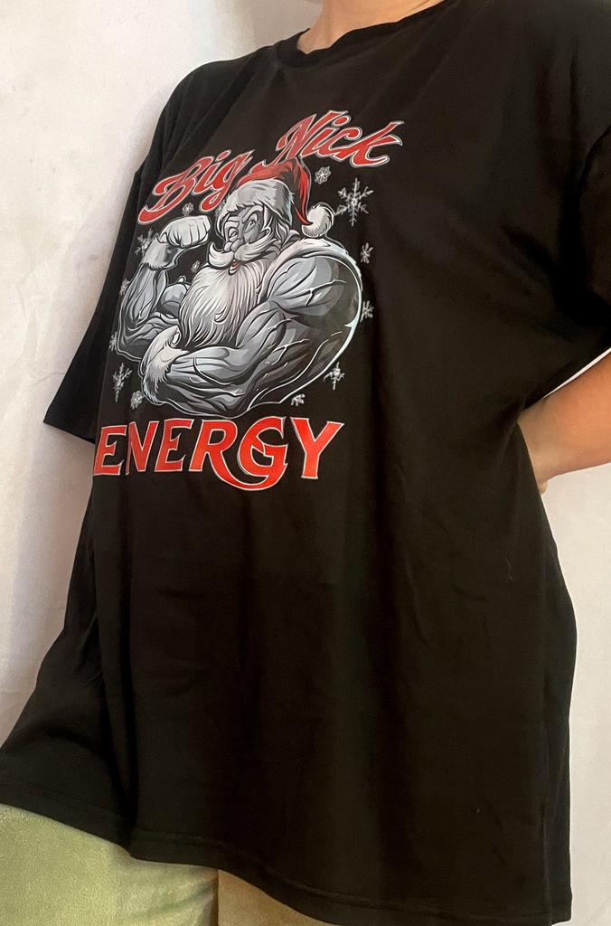 Big Nick Energy Christmas Santa Claus T Shirt Black Muscular Santa Print Casual Holiday Wear Men's Fashion Top