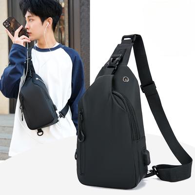 Men Bag Fashion New Solid Color Men Chest Bag Outdoor Casual Fashion One Shoulder Crossbody Bag USB Charging Shoulder Bags