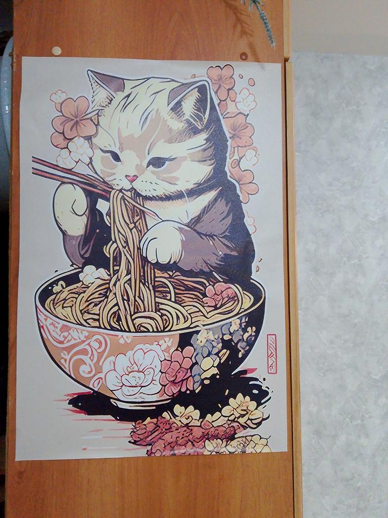 Kawaii Japanese Ramen Animal Cat Posters Canvas Prints Paintings Home Decor Noodles Food Wall Art Poster Kitchen Room Decoration