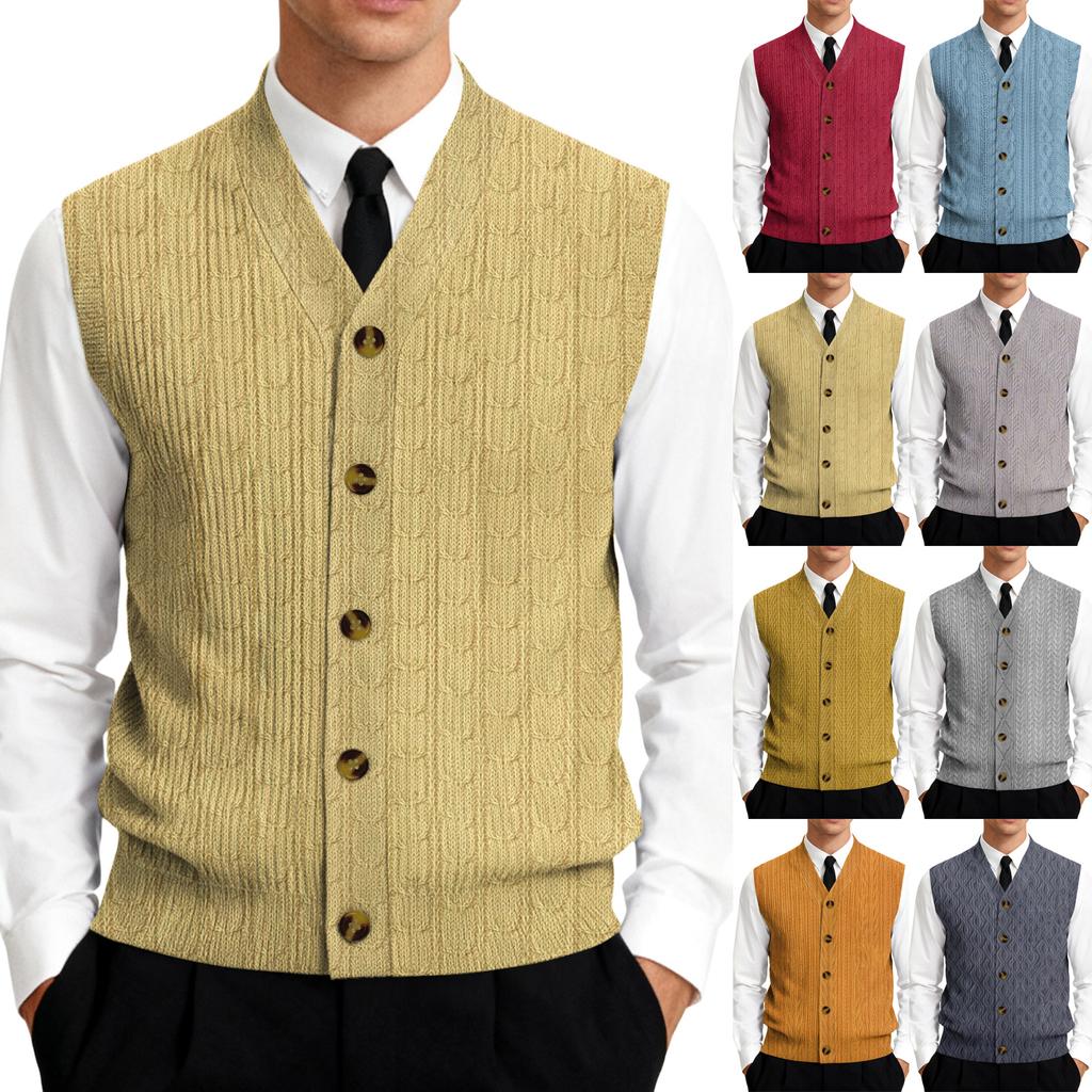 Men's V-Neck Sleeveless Knit Cardigan Vest