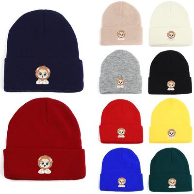 Cartoon Lion Print Knit Hat Beanie,Cute Animal Headwear Thermal Cuff Leisure Warm Knitted Cap Beanie