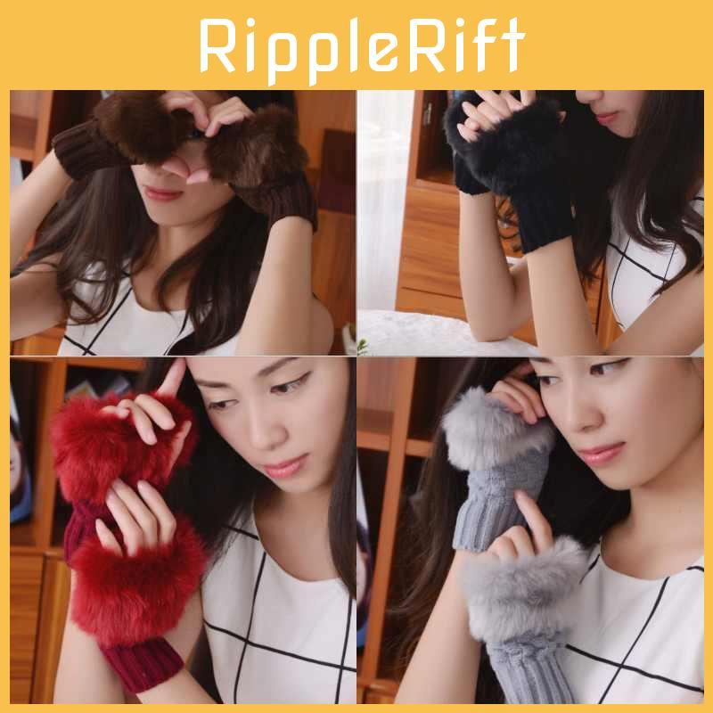 Winter Warm Gloves For Women With Knit Fabric And Half Finger Design