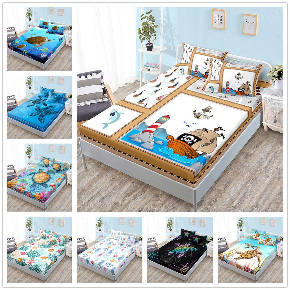 Three-Piece Mattress, Sea Turtle Blue Underwater World Mattress, Mattress Protective Cover