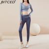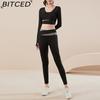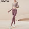 BITCED Color-Block Long Yoga Set Quick-Dry Seamless Nude-Feel Fitness Wear Seamless Slimming Breathable Sports Set
