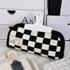 1pc-Black Checkerboard Grid Large High Value Storage Pencil Bag Stationery Box