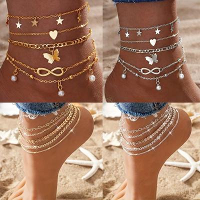 4Pcs/5Pcs Adjustable Butterfly Anklet Multilayer Link Anklet Women Girl Jewelry Accessories