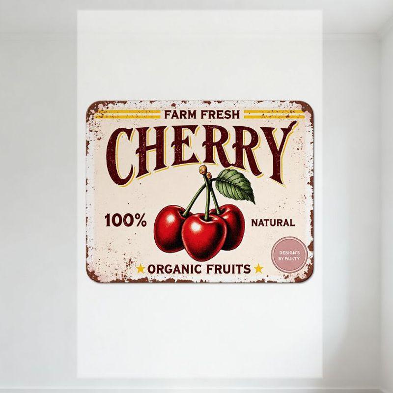 Vintage Farm Fresh Cherry Metal Tin Sign 100% Natural Organic Fruits Wall Plaque Rustic Retro Art Decor for Kitchen Bar Cafe Hom
