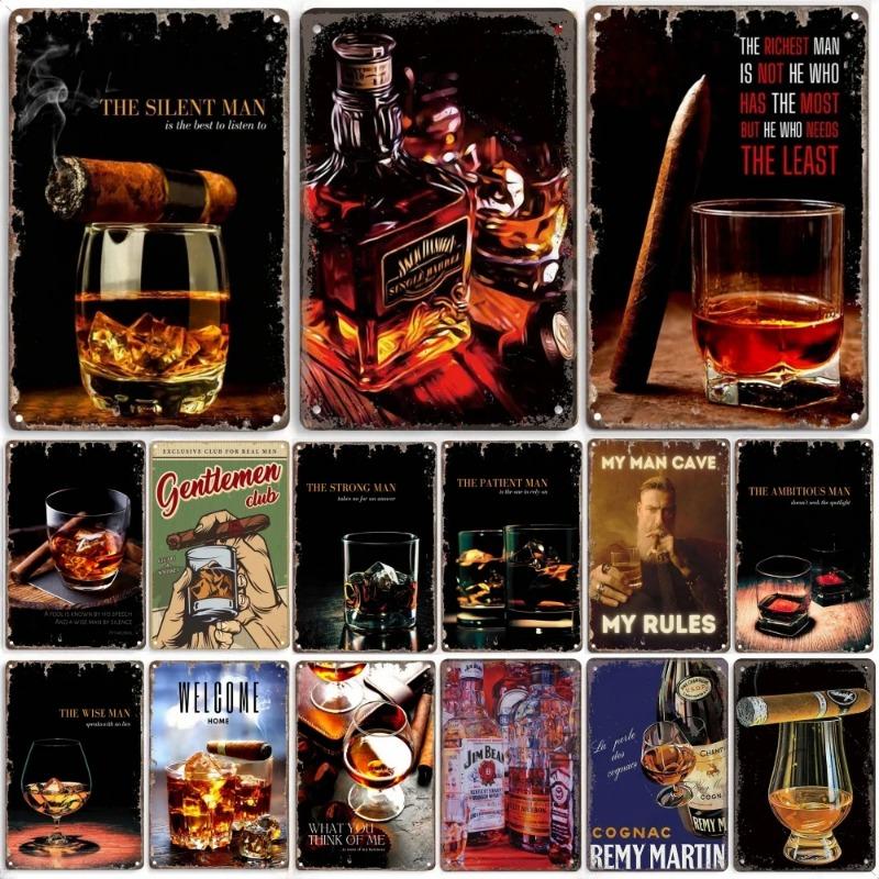Vintage Whiskey Cigar Poster Metal Tin Sign Plaque Retro Decorative Plates For Garage Club Man Cave Bar Hotel Cafe Wall Decor