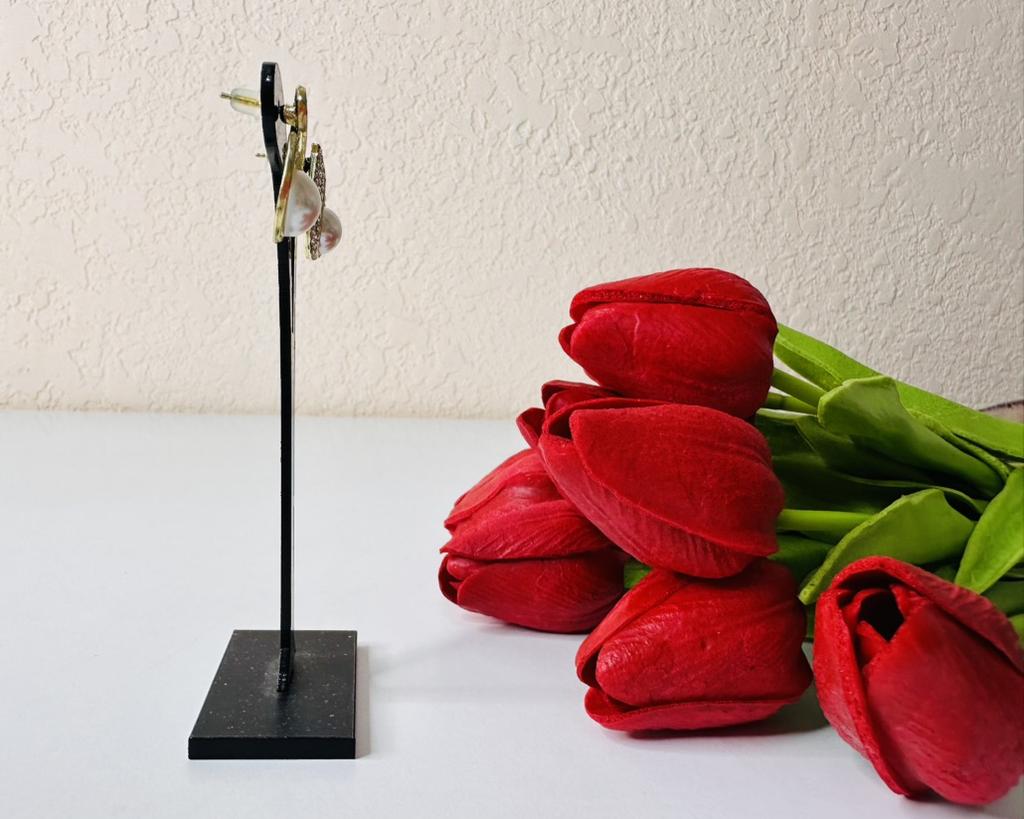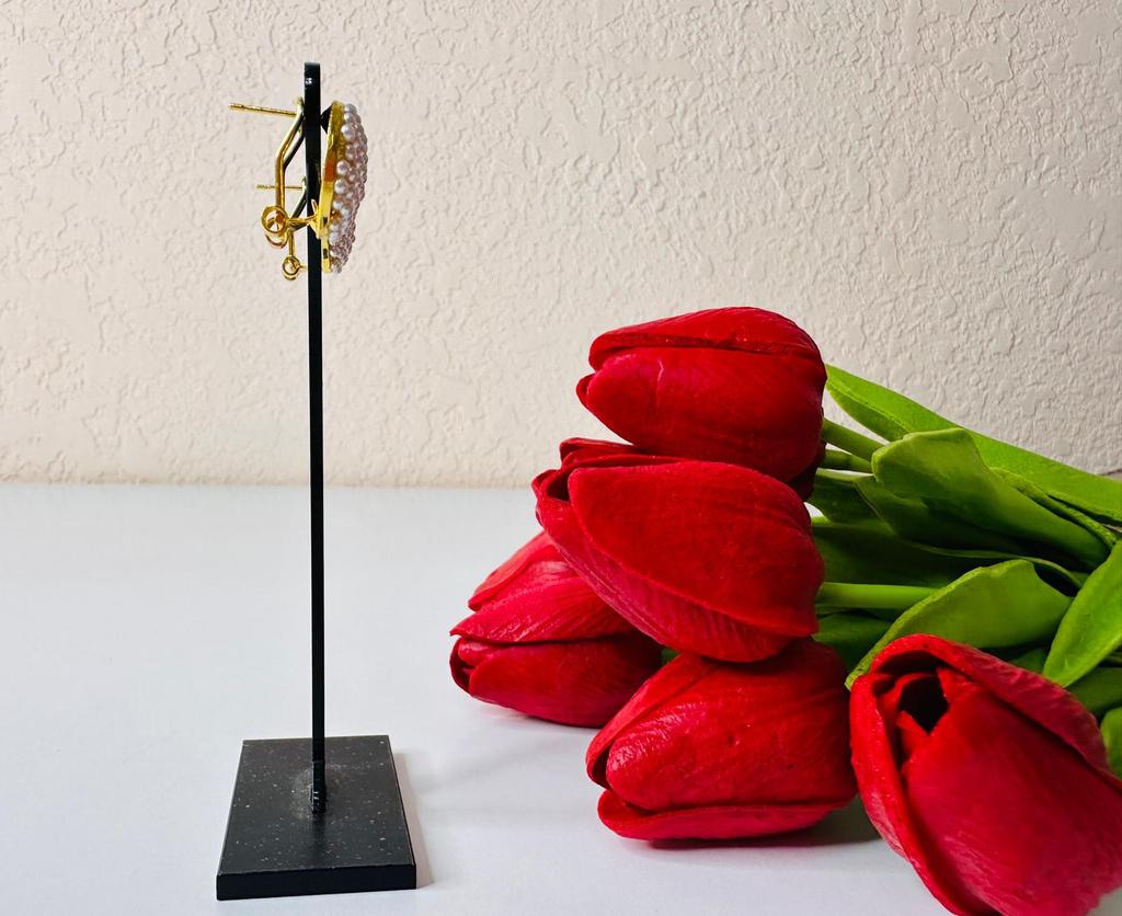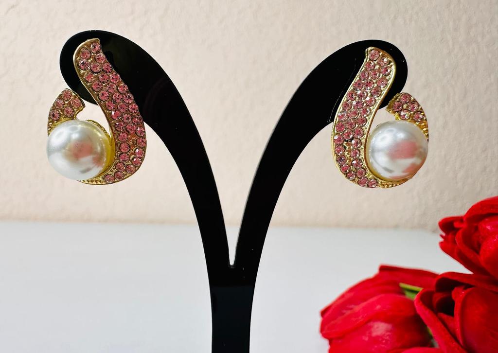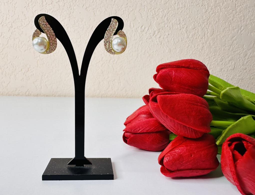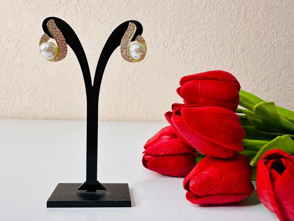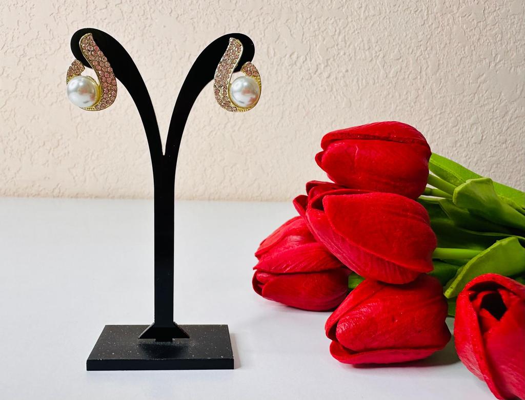 EARRINGS Stud earrings with a framed pearl and crystals. They arrived in Italy with tracked shipping in 16 days. Super fast shipping. Well wrapped in a sheet of bubble wrap they arrived intact. Packaging: They come in a plastic bag with a cardboard support. Excellent quality-price ratio. The metal color is gold in zinc alloy. Back closure: in silicone, very secure No glue stains and no defects. The pearls and crystals are well set. The purchase is recommended👌👌👌👌👌