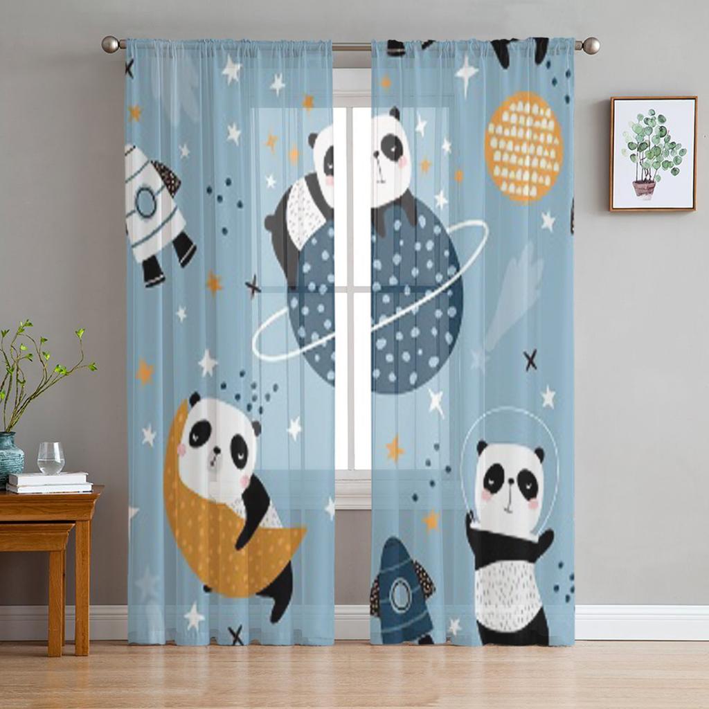 Slepping Pandas On Moons And Starry Sky Chiffon Sheer Curtains for Living Room Bedroom Decoration Window Voiles Tulle Curtain
