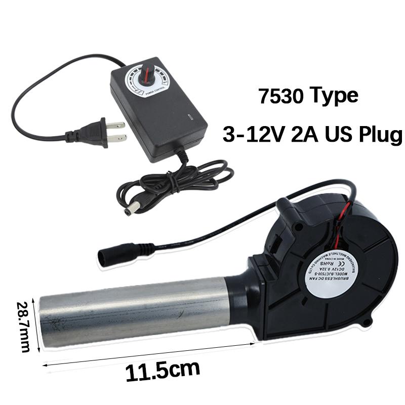12V Dc 7530 Blower Turbo Cooling Fan with Adjustable Speed Power Controller Barbecue Air Blower Picnic Grill Wood Stove Cooking
