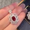 High Quality Classic Ruby Jewelry Sets Full Diamond Flowers Sparkling Red Earrings For Women Rings Wedding Engagement Necklace