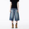 Black of Exit American Retro Washed Denim Shorts Unisex A-Line Loose Fit Cropped Pants Trendy