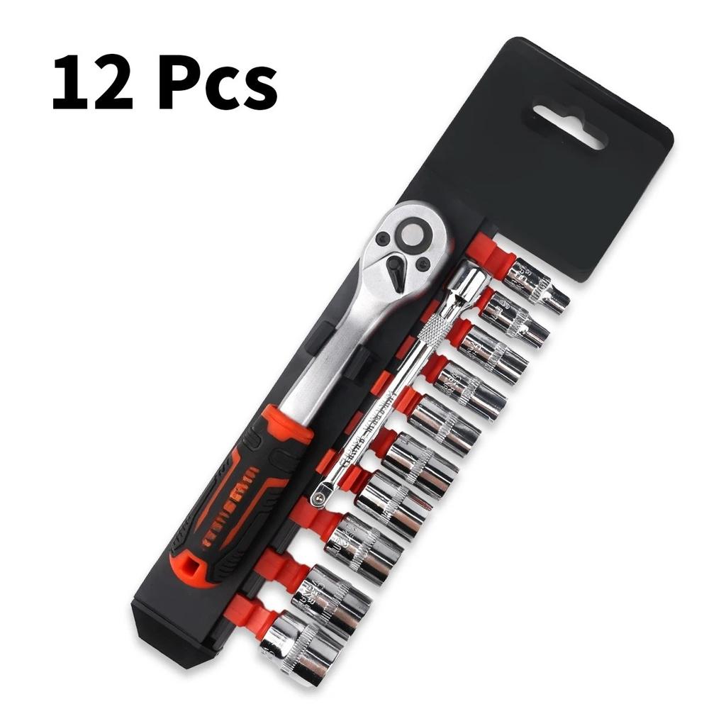 12PCS 1 4 Inch Drive Socket Wrench Set 72 Tooth Quick Release Ratchet Handle 10 Sockets Extension Bar 2 Way Reversible Tool Kit
