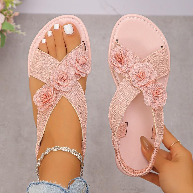 Women's Wide Width Cross Strap Flat Sandals - Embroidered Floral Slide Sandals with Wide Band, Open Toe Beach Flip Flops