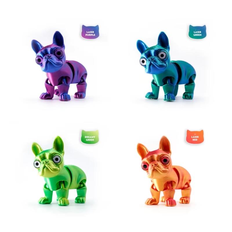 3D Printed Popular Cute French Dog With Movable Joints Cute Pet Desktop Toy Ornaments For Christmas and Halloween