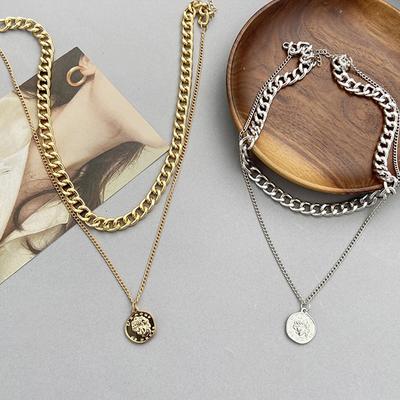 Metal Chain Personalized Creative Coin Pendant Collarbone Chain Necklace, Temperament Light Luxury High-end Jewelry