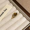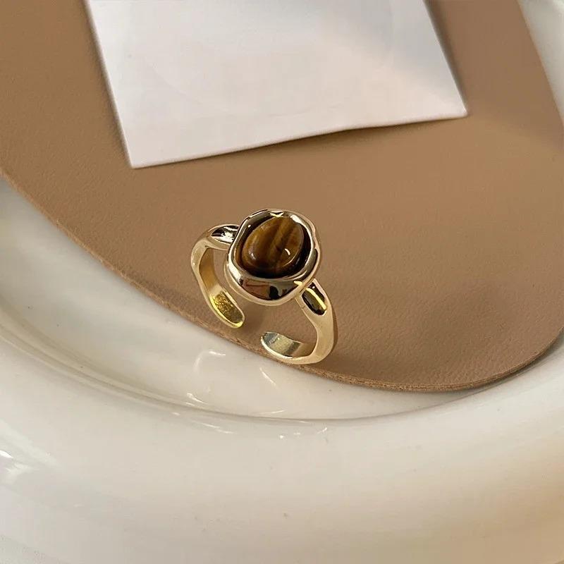 Irregular Round Personalized Vintage Brown Tiger Eye Stone Open Ring For Women Finger Ring Design Sense High End Jewelry Gift