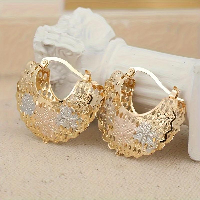 Trendy Gold Plated Print Copper Hollow Round Heart Hoop Earrings for Women Jewelry Accessories Wedding Party Gift