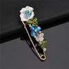 Luxury Colorful Enamel Flower Big Needle Pins For Women Elegant Rhinestone Floral Clothes Brooches Wedding Party Jewelry