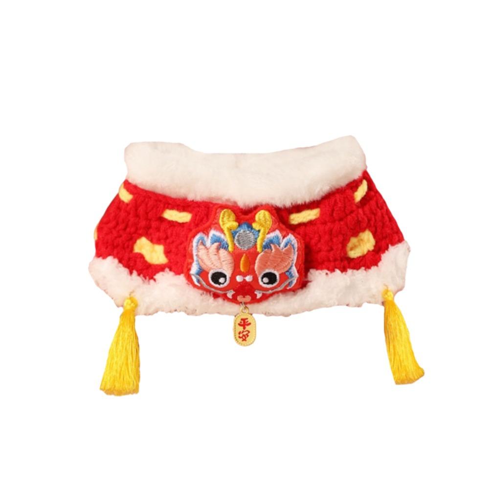 Chinese Style Spring Festival Lion Dance Cat Tie Adjustable Handmade New Year Pet Collar Blessing Warm Cat Knitting Scarf Winter