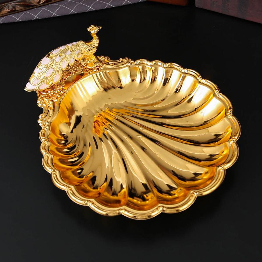 Peacock Palm Tray Creative Shell Fruit Plate European High-end Light Luxury Fruit Plate Home Living Room Retro Fruit Plate