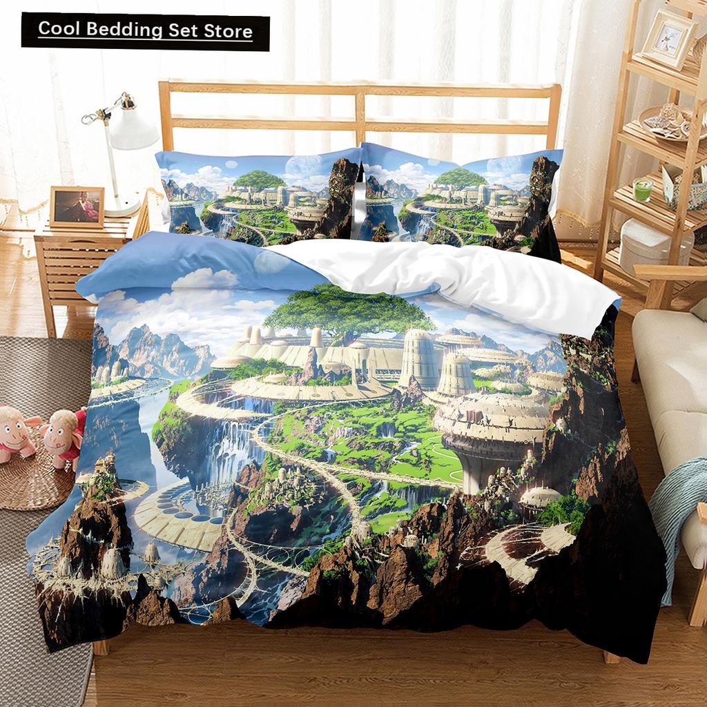 Cartoon Fantasy World King Queen Duvet Cover Magic Castle Bedding Set Mythical Landscape Quilt Cover Polyester Comforter Cover