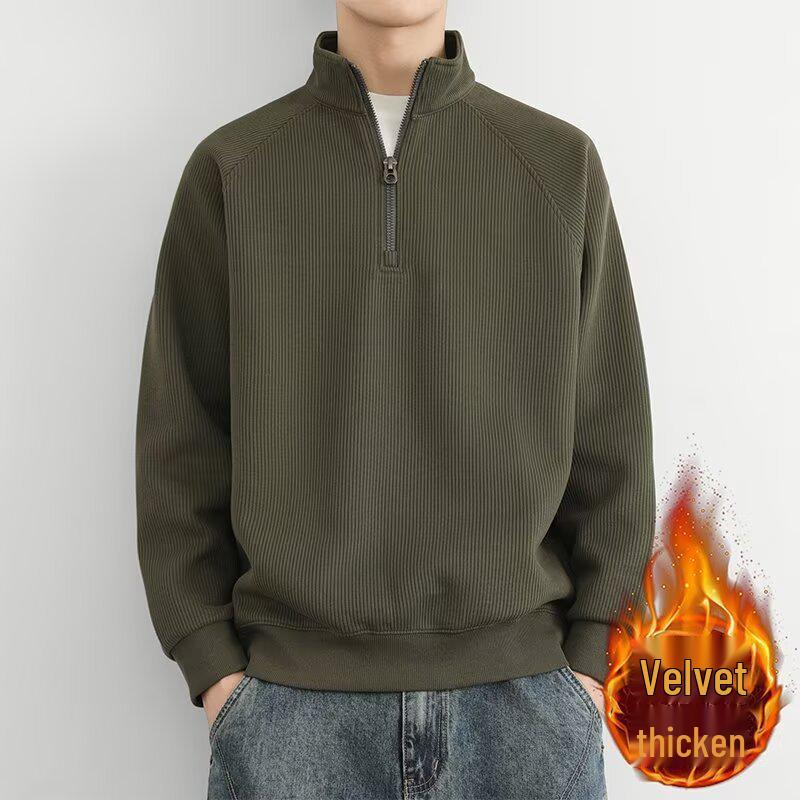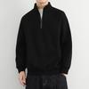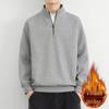 Men's Fleece-Lined Half-Zip Retro Sweatshirt, Solid Color Casual Jacket for Spring/Autumn/Winter