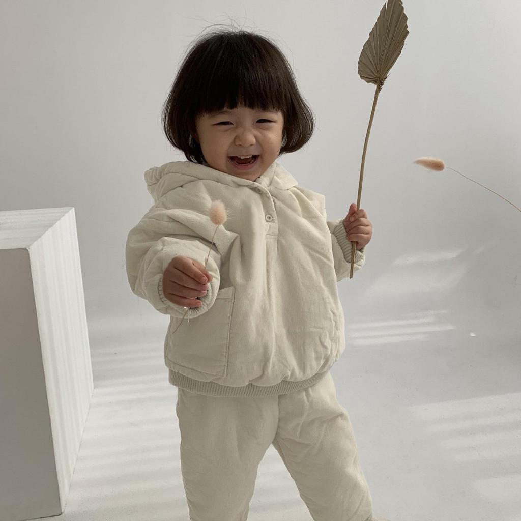 Korean Style Winter Kids' Thick Hooded Cotton Jacket & Pants Set for Girls