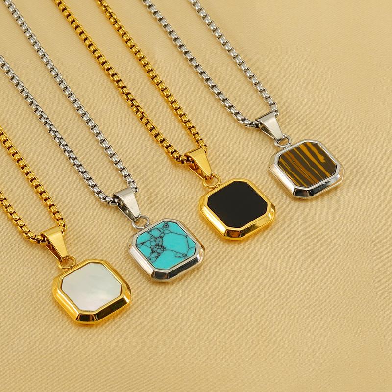 Hot-selling Titanium Steel Hip-hop Turquoise Pendant Men's and Women's Geometric European and American Fashion Non-fading Necklace Jewelry