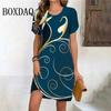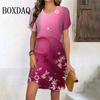 Purple Flowers Print Dresses For Women Summer Vintage Short Sleeve Mini Dress Casual Pullover O-Neck Plus Size Sundress