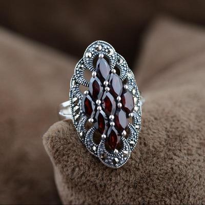 S925 Sterling Silver Jewelry Silver Lace Inlay Red Zircon Fine Women Ring