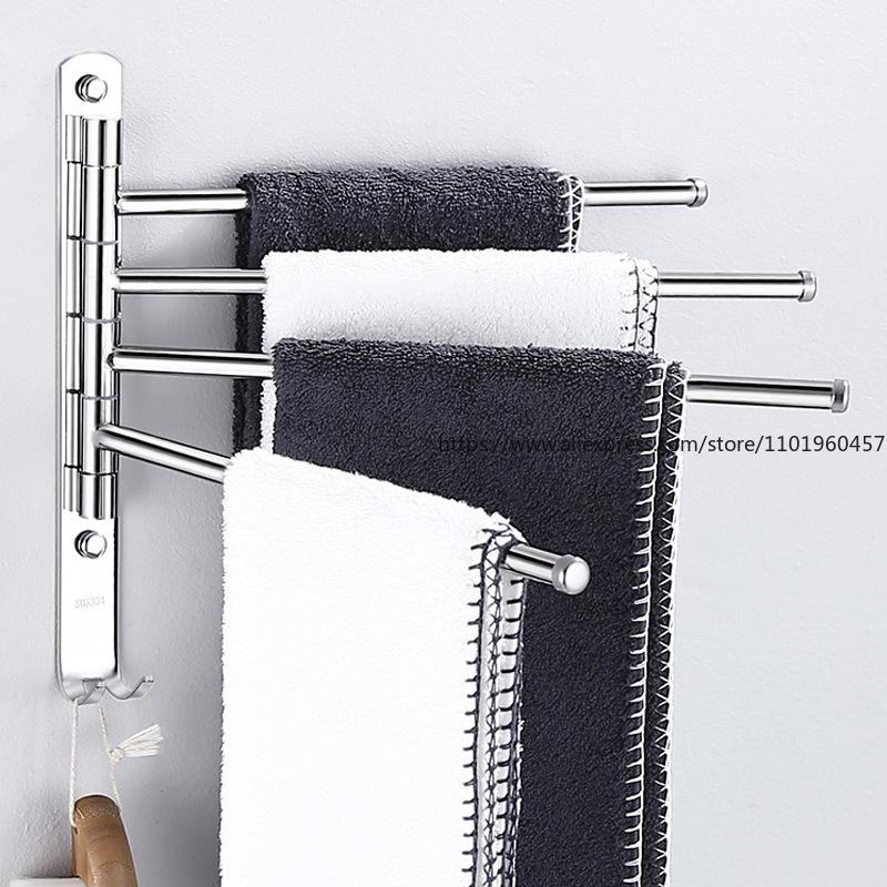 Bathroom Rotating Towel Bar Folding Movable Towel Rack No Punching 304 Stainless Steel Bathroom Rack Four Bars