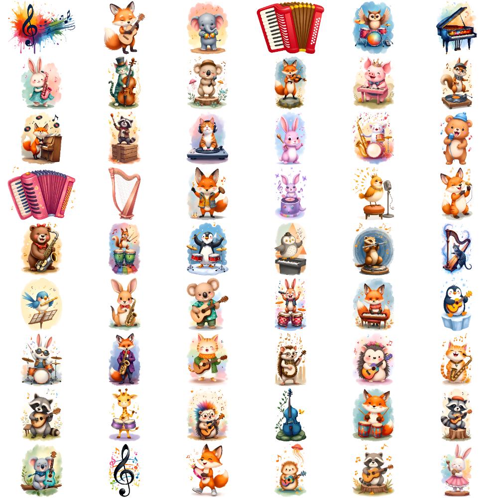 54pcs Temporary Tattoo Animal Musicians Cartoon Instrument Characters Temporary Tattoo Stickers For Children Cheeks Boys