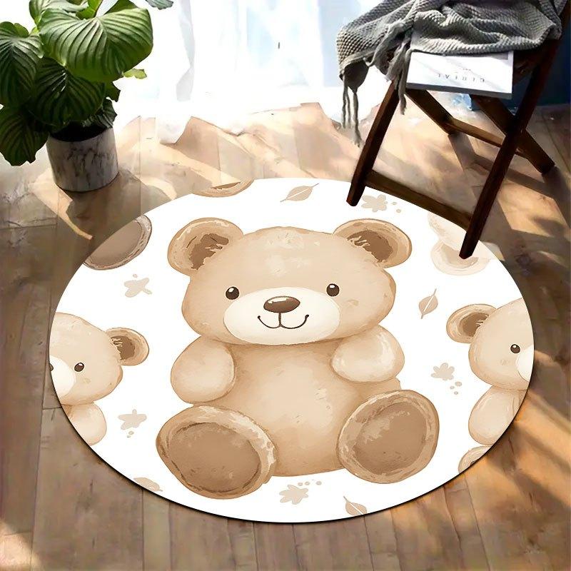 Design of Cute Little Bear Flannel-printed Round Floor Mats Are Slip-resistant Suitable for Room Bedroom Terrace Garden Carpets